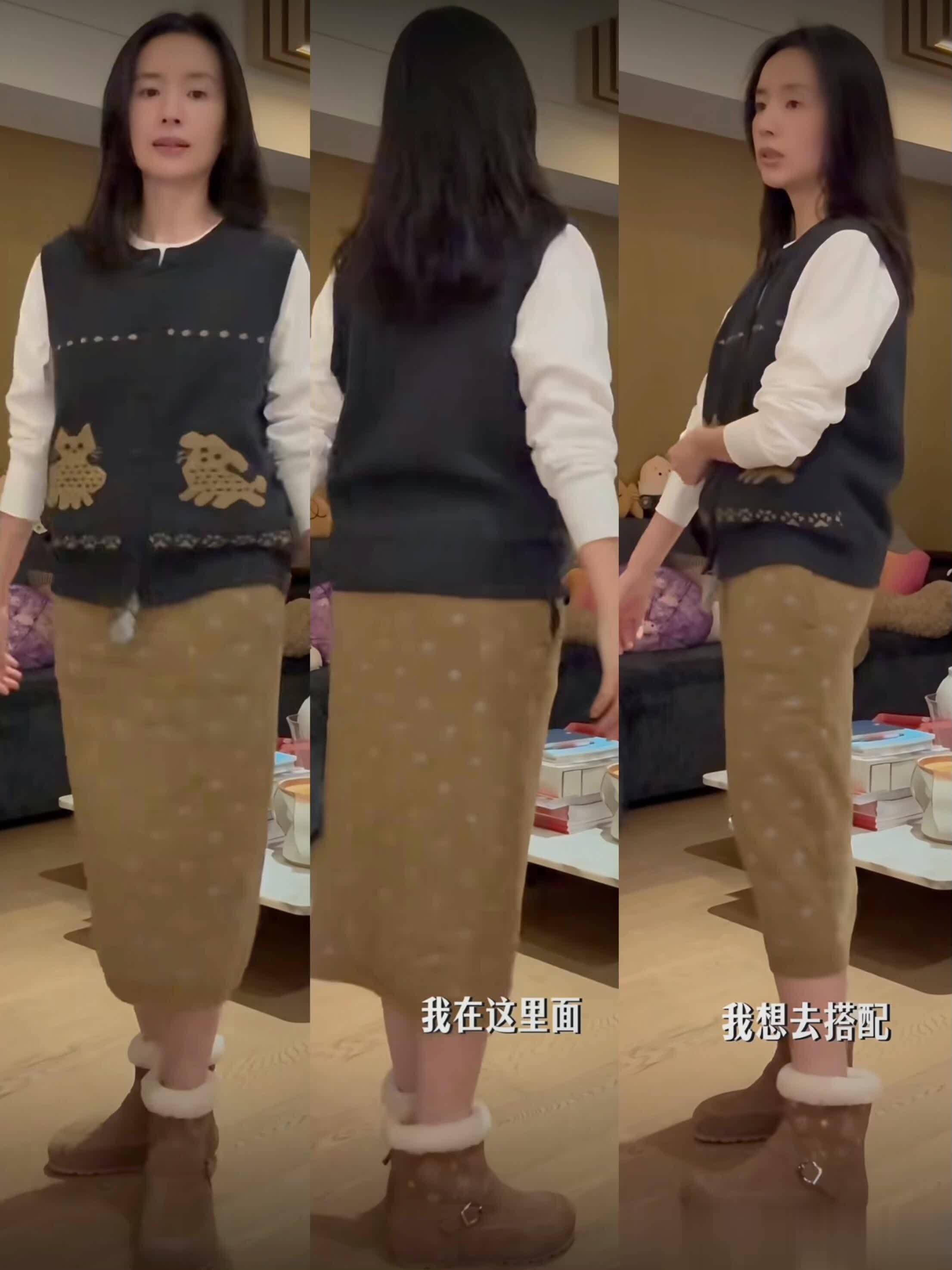 其实秋冬穿得好看,真不用追那些花里胡哨的款,像董洁这样,用灰色开衫、格纹衬衫这些衣柜里都有的基础款,搭双长靴或雪地靴,再注意露点头颈、手腕这些小细节,就能穿出不费力的气质。普通人不用买同款,把家里类似的衣服翻出来试试,说不定也能搭出同款温柔感~